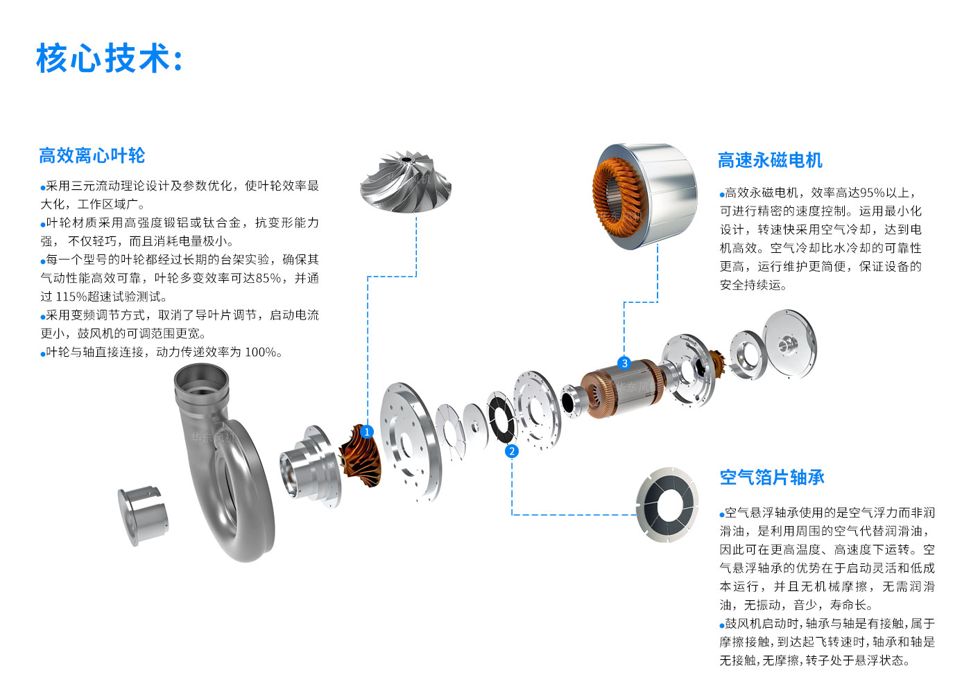 磁懸浮鼓風機是一款無接觸無摩擦實現(xiàn)智能控制的高效節(jié)能環(huán)保產(chǎn)品,由五自由度磁懸浮軸承、大功率高效永磁同步電機、高效離心葉輪、高精度轉(zhuǎn)子及高效專用變頻器等核心部件組成!